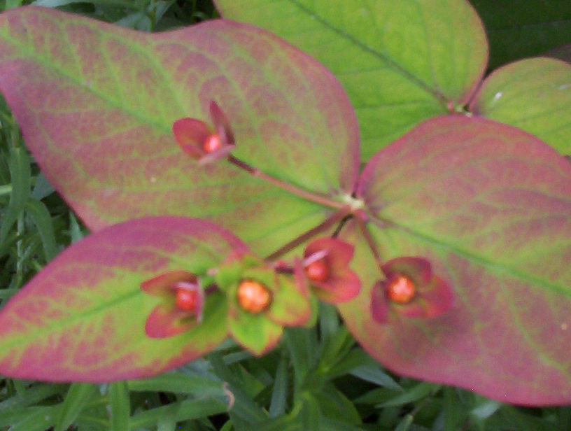 Feuilles dentées, rouge-rosé puis vert-gris, jaunissent à l'Automne